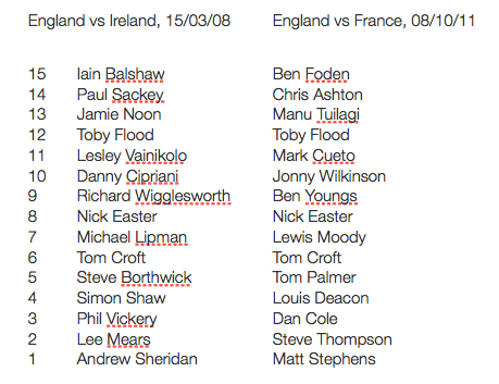 Why is that coming up? Two reasons. Firstly, the Mole is sort of sorry to see Johnson go. A couple of aspects of his resignation hint that he went before he was sacked, and the Mole doesn’t think that he’s the big problem with English international rugby. Johnson has been in the job since April 2008, and after three years he won a Six Nations Championship. It’s interesting to look at the last English team that Brian Ashton picked before Johno assumed the role, and the last team that Johnson picked.