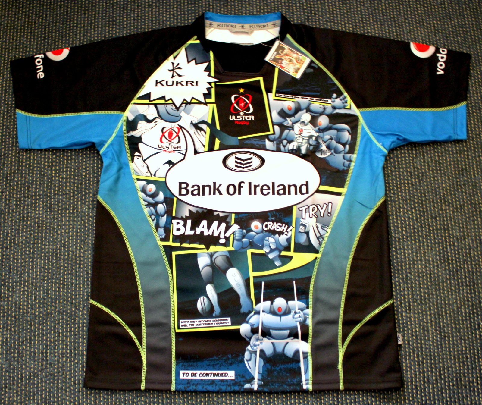 P.S. I really like the robot saying “Bank Of Ireland” as well as the onomatopoeic “TRY!” sound over the left rib area. And of course the to be continued. I can only imagine an opposition winger letting Andy Trimble barge past him so he can find out what happens on his back.