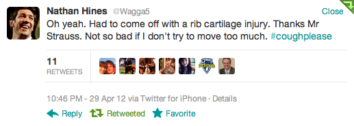 What seemed like an even bigger error in judgment was the substitution of Nathan Hines just eight minutes later. Hines was the standout forward on the pitch – not bad when you have the likes of Julien Bonnaire, Sean O’Brien, Brad Thorn, David Zirakashvili and Jamie Heaslip up for the nomination – who was causing Leinster huge problems in every single facet of play. His work at restarts was not just impeccably skillful in terms of taking difficult ball under pressure, but also casually inventive as to how he offloaded the pill and created a little space for the receiver. In open play his ability to eat up the yards, take the tackle on his own terms and offload sympathetically to a trailing runner gave the Leinster defense serious headaches. Given that your second rows are key players in the success of the tight set-pieces – the scrum and the lineout – he can also take a good deal of credit for his team’s advantage in those parts of the game whilst he was still on the pitch. Cotter’s decision to substitute him seemed a poor call at the time, though Hines has since revealed that he picked up a significant rib cartilage injury .