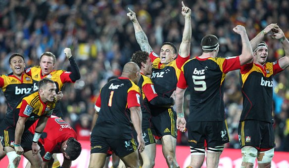 The Chiefs celebrate their semi-final win over the Crusaders. They were beaten finalists in 2009, and will be looking to win their first ever Super Rugby title in front of their home fans in Waikato Stadium against the Sharks tomorrow.