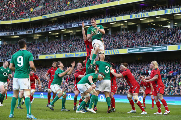 Devin Toner goes high to claim one of the six lineouts he took against Wales. The lineout was the most important set-piece of the game, and dominance in the air paved the way for a resounding Irish victory.